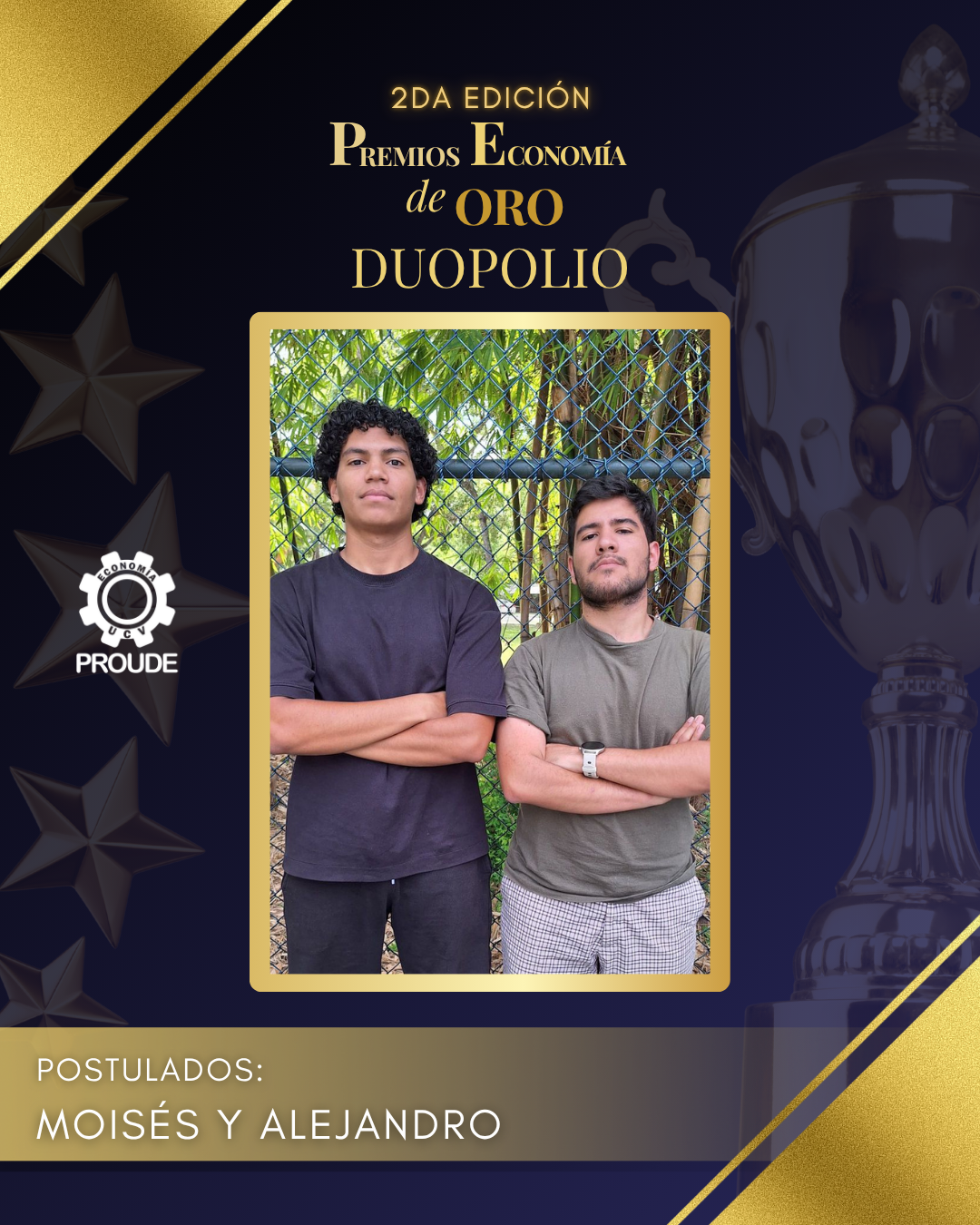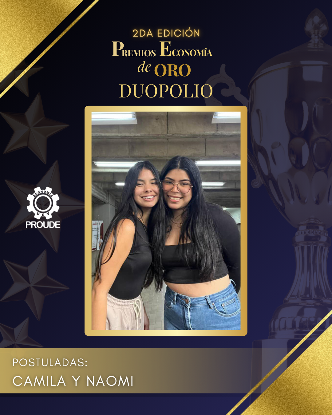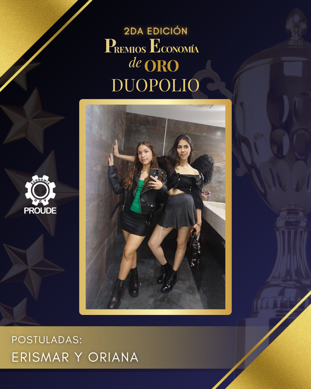 Candidatos a Economía de Oro 2025 Todos conocemos a esa dupla en la escuela que es inseparable, esos que destacan y logran cosas juntos de cualquier manera. Duopolio – Ese duo de besties Ariadna y Leysa Adrian y Samuel Camila y Naomi Erismar y Oriana José y Johan Moisés y Alejandro Williams y José Please write some text ! Add Option This poll has expired.